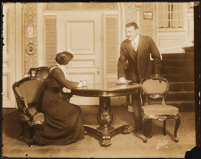 [Wilton Lackaye as John Brand, Max Figman as Dick Meade and Lolita Robertson as Mrs. Reynolds in Act 4 of "Fine Feathers".]