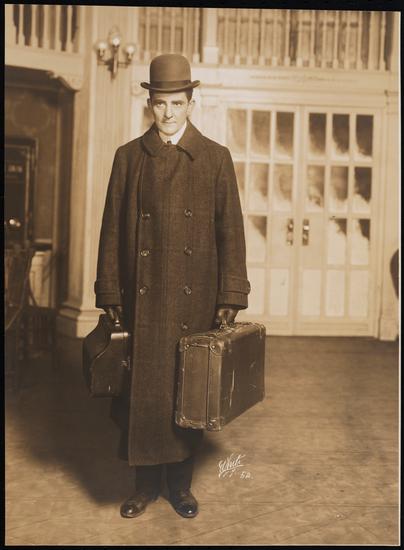 ["Seven Keys to Baldpate" theater still.]