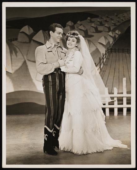 [Harry Stockwell as Curly and Evelyn Wyckoff as Laurey in "Oklahoma!".]