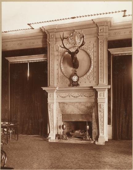 Interior Views of the Metropolitan Club House [Dining room fireplace.]