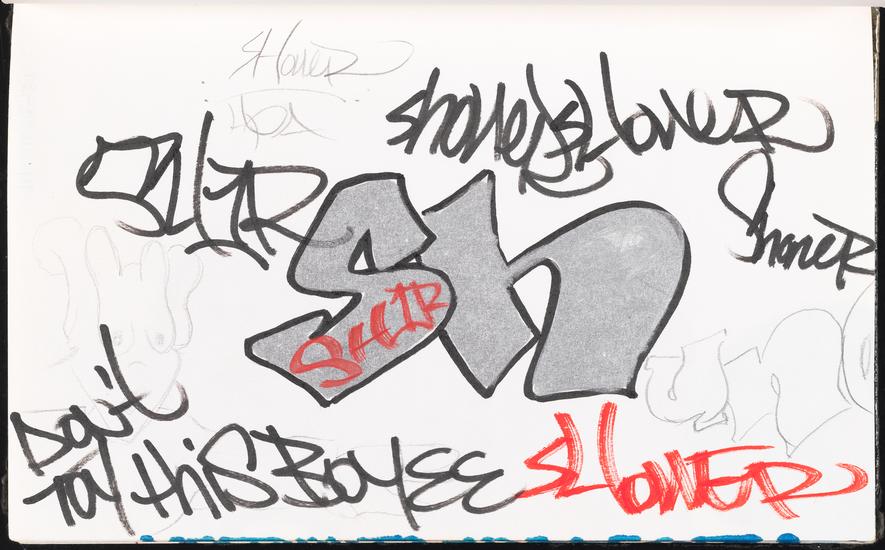 Medium graphite pencil, marker (pen), paper (fiber product)
