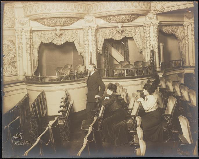 [Maude Adams adjusting an actor's costume for "Chantecler".]