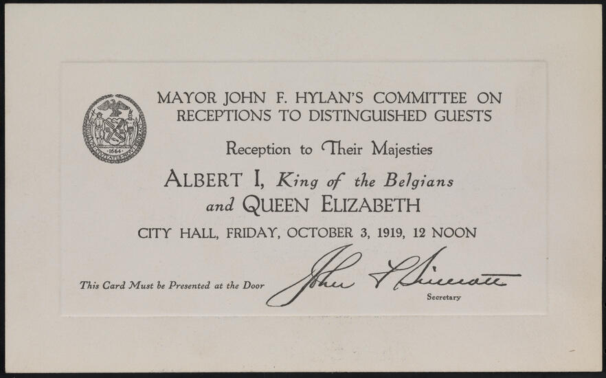 Reception to Their Majesties Albert I, King of the Belgians and Queen Elizabeth