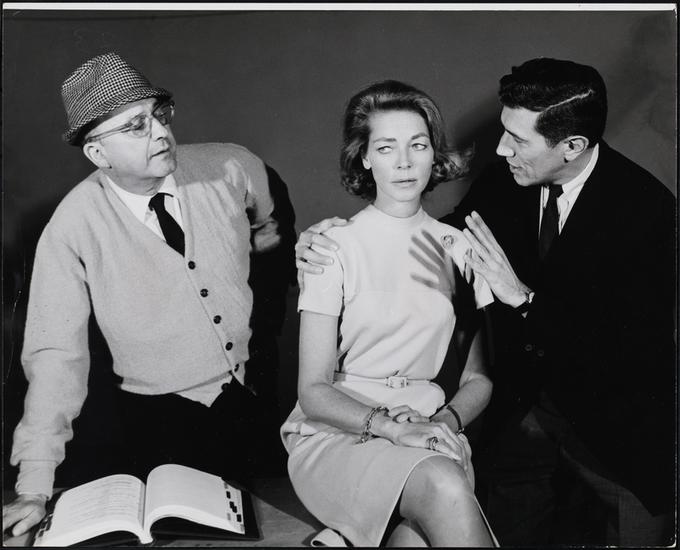 [Director Abe Burrows, Carol Channing, and Barry Nelson during rehearsals for "Four on a Garden".]