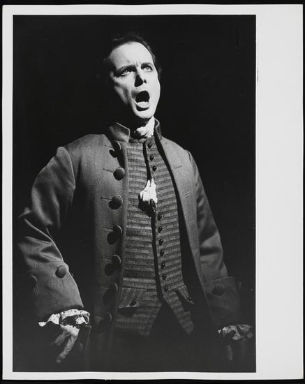 [Possibly Duane Bodin in the role of George Read and William Daniels as John Adams in "1776".]