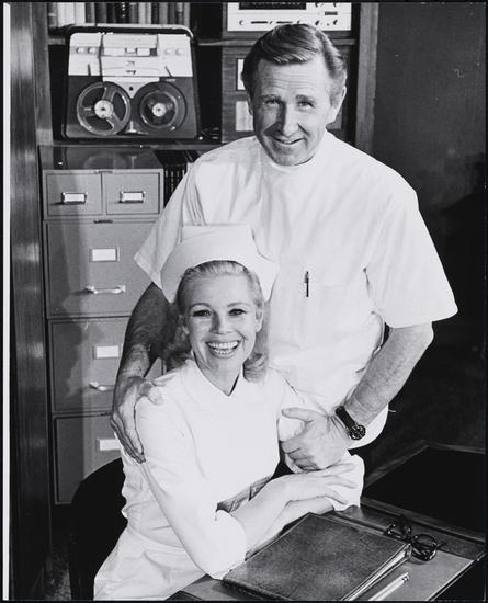 [Lee Lawson as Toni and Barry Nelson as Julian in "Cactus Flower".]