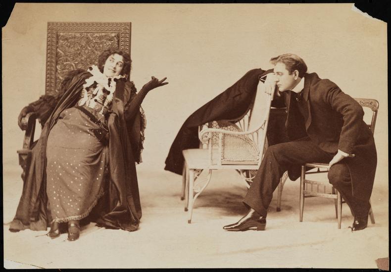 [James K. Hackett as Sir George Lamorant and Mary Mannering as Fay Zuliani in "The Princess and the Butterfly".]