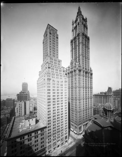 Woolworth and Transportation Bldgs. from Church & Fulton Sts.