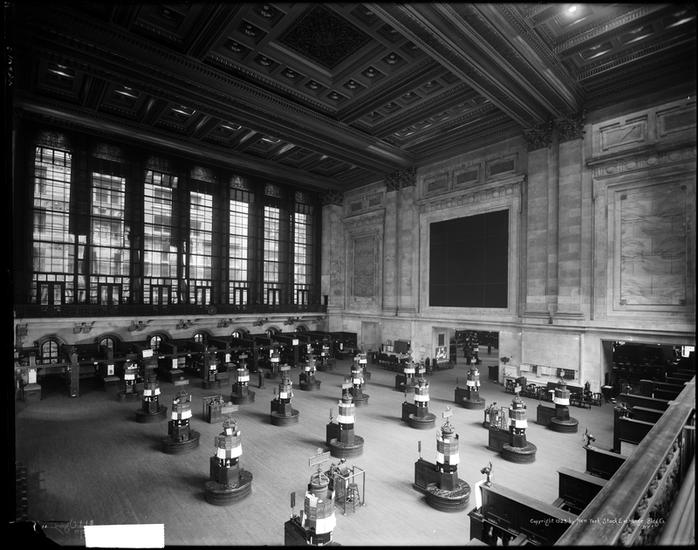Stock Exchange [Overhead view of the floor of the stock exchange.]