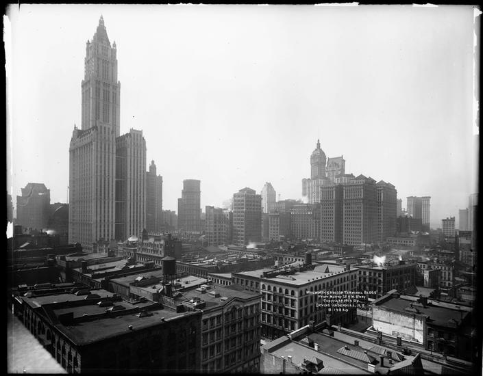 Woolworth and Transportation Bldgs. from Church & Fulton Sts.