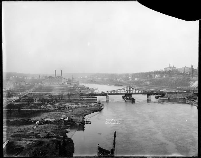 Municipal and Woolworth Buildings, New York City. View from North River.