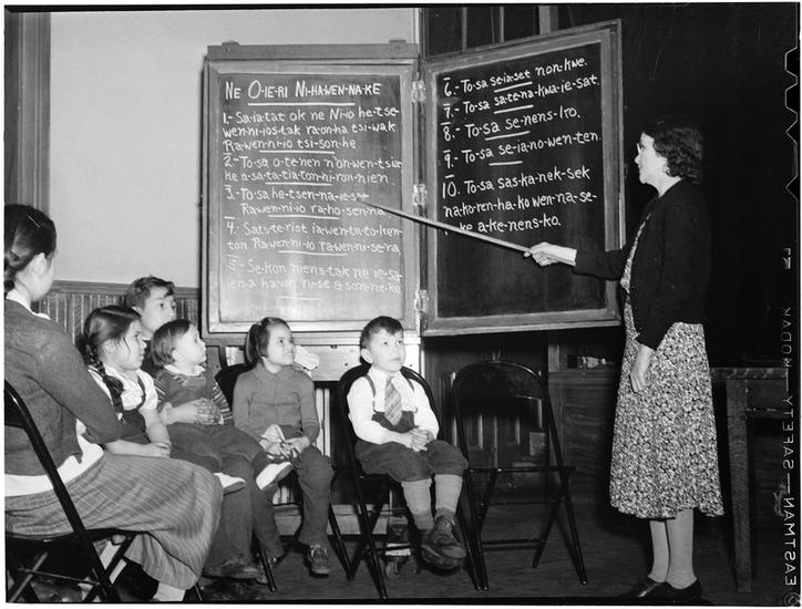 [Children learning about Native American history.]