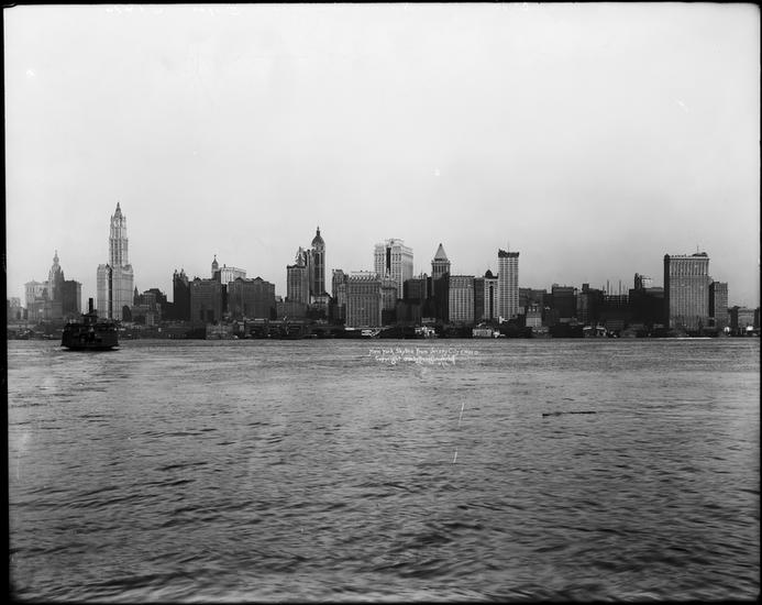Municipal and Woolworth Buildings, New York City. View from North River.