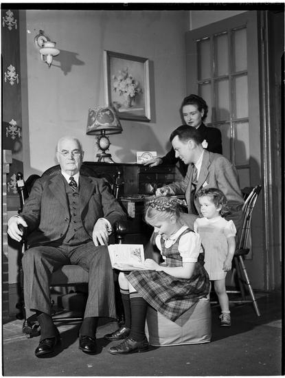 [Man reading to his family.]