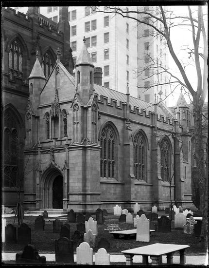 N.Y. Curb Market Bldg. & Trinity Church Yard, 1921.