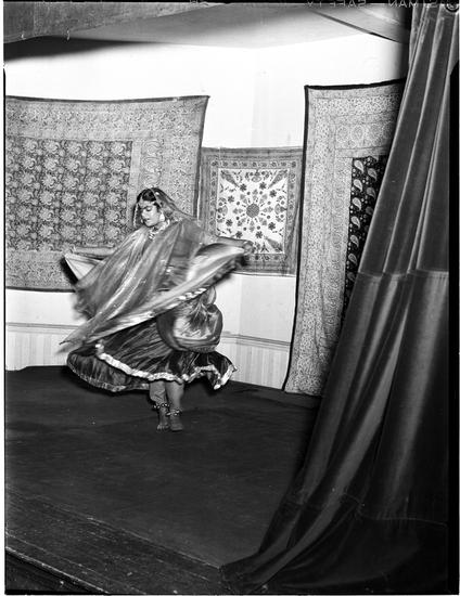 [Woman dancing in traditional dress.]