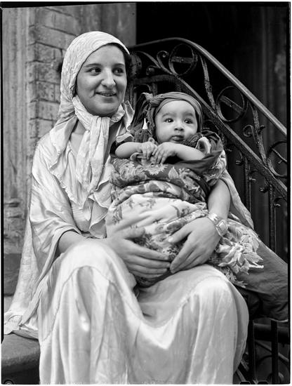 [Woman braiding a girl's hair as a younger girl holds a doll.]