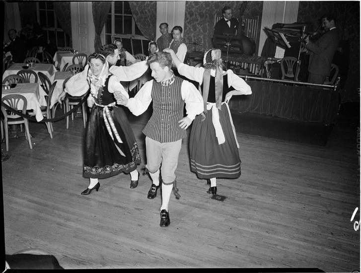 [Couples folk dancing.]