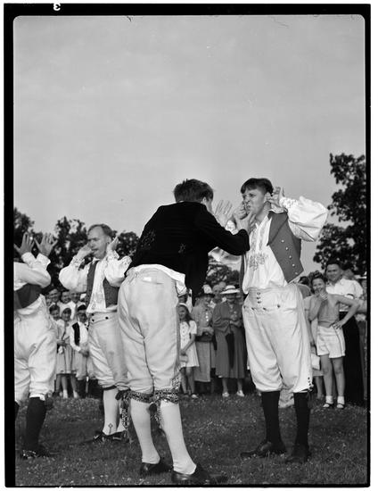 [Couples folk dancing.]
