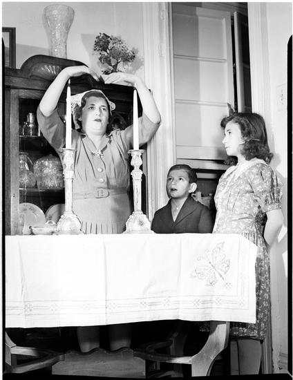 [Women giving a baby a bath as undressed children wait for their turn.]