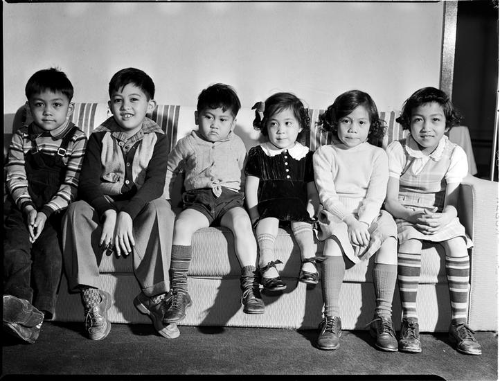 Shoe Shine Boy [Mickey and other children line up on a sidewalk.]