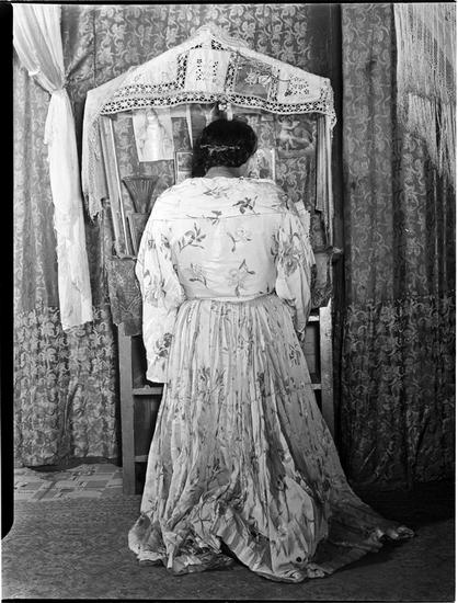 [Woman praying at an altar.]