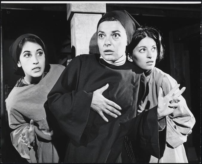 [Anne Bancroft as Sister Jean of the Angels with two unidentified actors in "The Devils".]