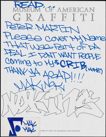 [Sale of drawing from A-One to Martin Wong for $200.]