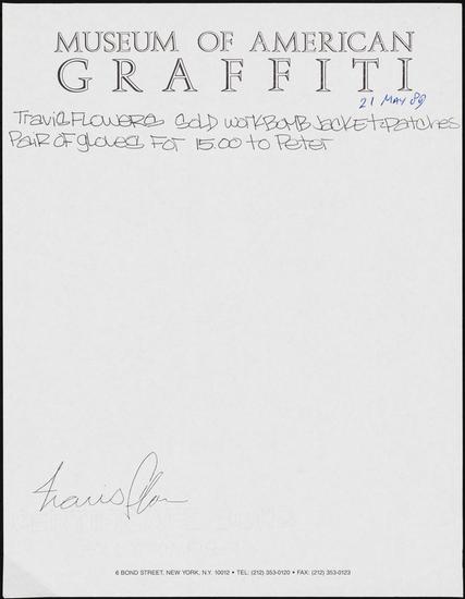 [Museum of American Graffiti letterhead with writing.]