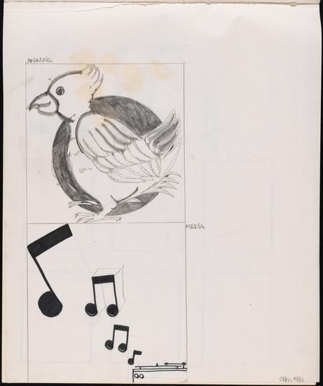 [Designs for "Save The Eagle" poster in DAZE's sketch pad.]