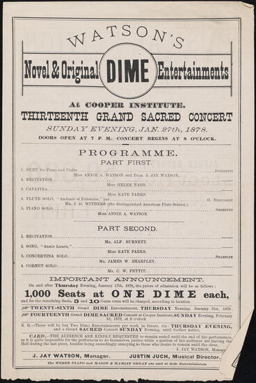 Watson's Novel & Original Dime Entertainments. Ninth Grand Sacred Concert