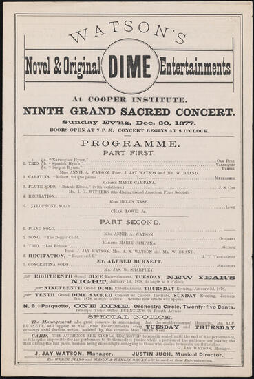 Watson's Novel & Original Dime Entertainments. Thirteenth Grand Sacred Concert