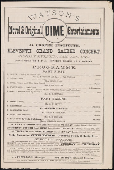 Watson's Novel & Original Dime Entertainments. Ninth Grand Sacred Concert