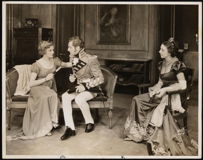 [Nancy Hamilton as Miss Bingley and Helen Chandler as Jane Bennet in "Pride and Prejudice".]