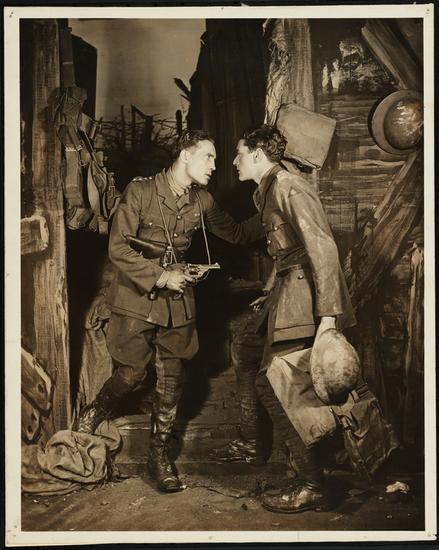 [Richard Bird as Captain Stanhope and G. P. Huntley, Jr. as 2nd Lieut. Hibbert in "Journey's End".]