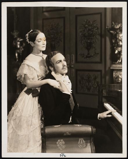 [Helen Hayes as Victoria and Vincent Price as Prince Albert in "Victoria Regina".]
