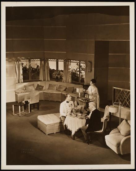 [Alfred Lunt as Rudolph Maximillian von Hapsburg, Lynn Fontanne as Elena and Henry Travers as Herr Krug in "Reunion in Vienna".]