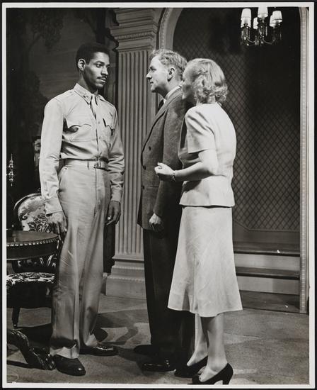 [Edwin Jerome as Senator Ellsworth Langdon and Barbara Bel Geddes as Genevra Langdon in "Deep Are the Roots".]
