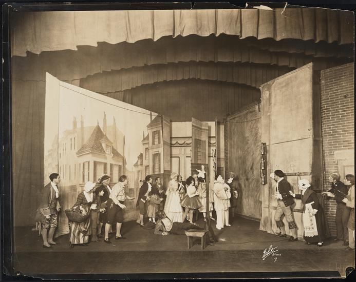 [Elsie MacKay as Marie Duplessis, John Roche as The Young Man, George Ryan as Master Charles and Lionel Atwill as Jean-Gaspard Deburau in "Deburau".]