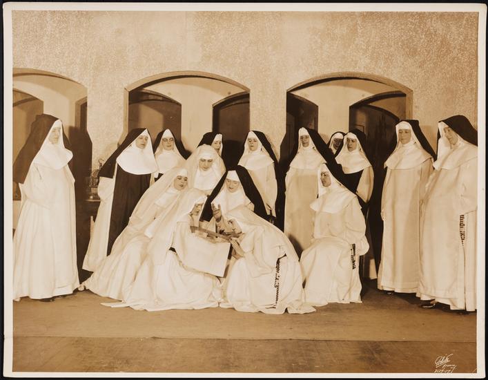 [Eva Le Gallienne as Sister Joanna of the Cross and Josephine Hutchinson as Teresa in "The Cradle Song".]