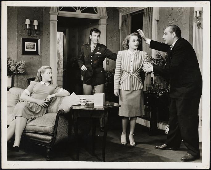 [John Dall as Lt. William Seawright, Phyllis Povah as Mrs. Edith Wilkins and Howard Smith as Judge Harry Wilkins in "Dear Ruth".]