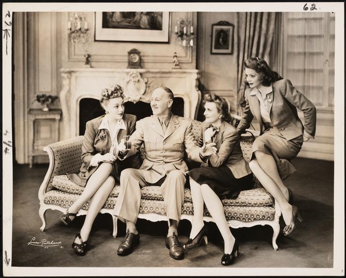 [Doris Nolan as Nan, Virginia Field as Edna, Arleen Whelan as Vivian and William J. Kelly as Brigadier General Slade in "The Doughgirls".]