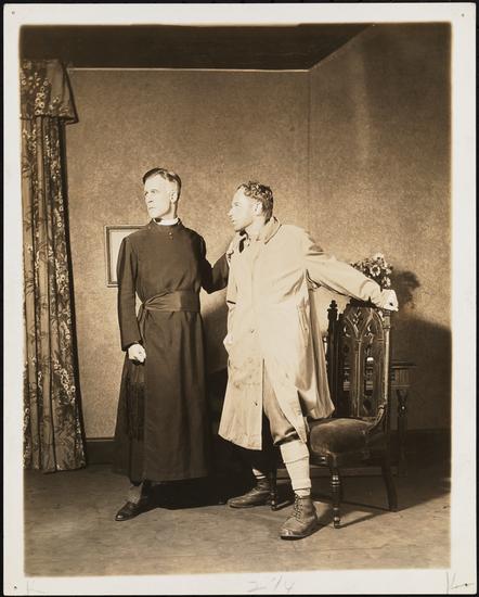 [Austin Trevor as The Parson and Leslie Howard as Matt Denant in "Escape".]