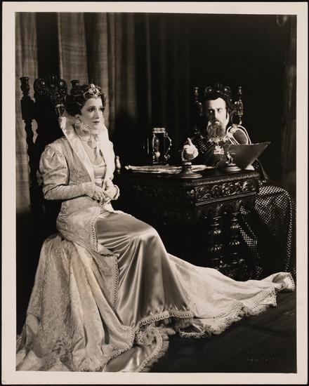 [Helen Menken as Elizabeth Tudor and George Coulouris as Lord Burghley in "Mary of Scotland".]