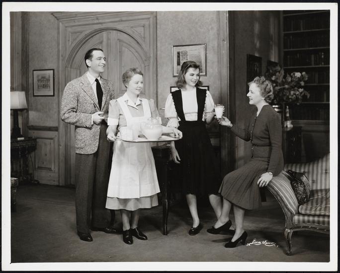[Adrienne Gessner as Bertha and Phyllis Thaxter as Claudia Naughton in "Claudia".]