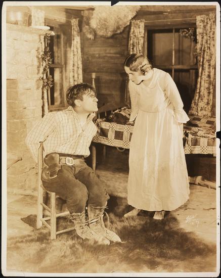 [Margaret Borough as Jude Lowry and John F. Hamilton as Rufe Pryor in "Hell-bent Fer Heaven".]
