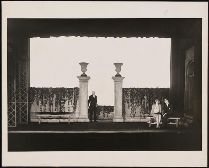 [Lynn Fontanne as Nina Leeds, John J. Burns as Gordon Evans and Glenn Anders as Edmund Darrell in "Strange Interlude".]