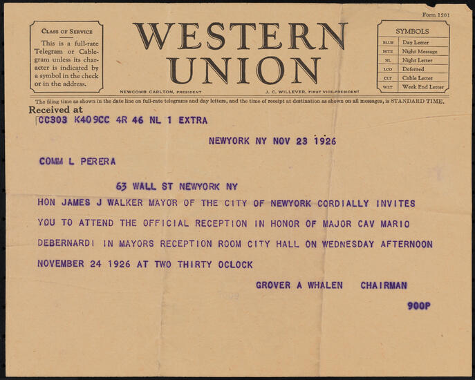Honorable Grover A. Whalen. Chairman of the Mayor's Reception Committee