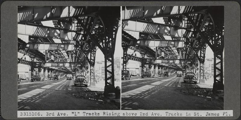 New End of South Ferry Branch, 3rd Avenue "L" at St. James Place and James Street.