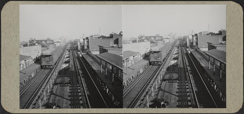 11144802. Myrtle Ave. "L" West from Bridge at Grand Ave. Station.